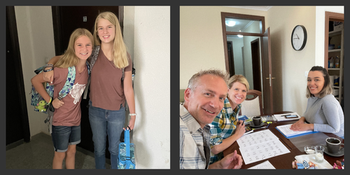 | You may have heard we have new partners in Kosovo! School’s in session! Praise God! The girls’ school opened in person and we have started language training. Here is a picture of the first days of school for all of us! Eliana and Malia are attending an international school called Prishtina High School. They are adjusting well and getting to know their teachers and classmates. Rob and Heidi are working with both a language helper (above) and a grammar teacher to learn Albanian. Prayer Requests: